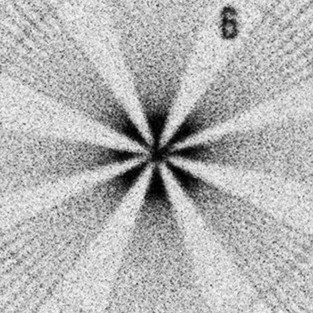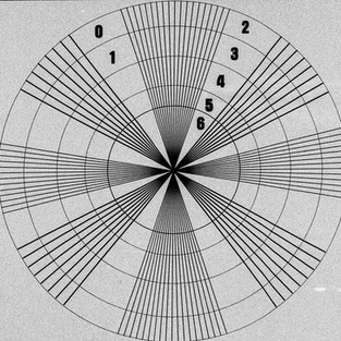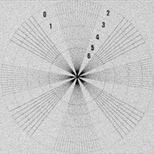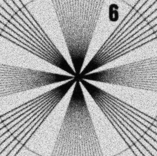 The Siemens star pattern is a pattern consisting of alternating black and white thin "pie-shaped" segments. As you move towards the center of the star the lines get closer and closer together. The higher the resolution of the system generating the star pattern, the closer to the center of the star they will appear to merge. By observing this, we could determine the sharpness of a picture outcome.